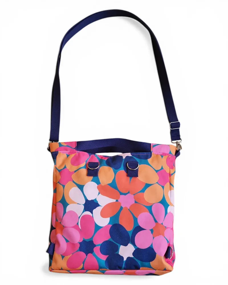 Combitote Samba : sac 3-en-1 modulable (main, bandoulière, sac à dos), compact et pratique, en toile imperméable colorée. Fabrication française, élégant et fonctionnel.