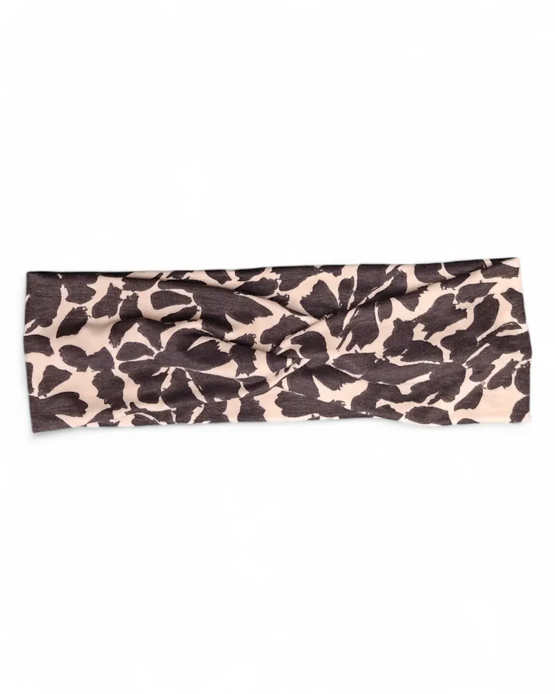 Bandeau en jersey de coton imprimé fleur noire sur fond blanc crème
