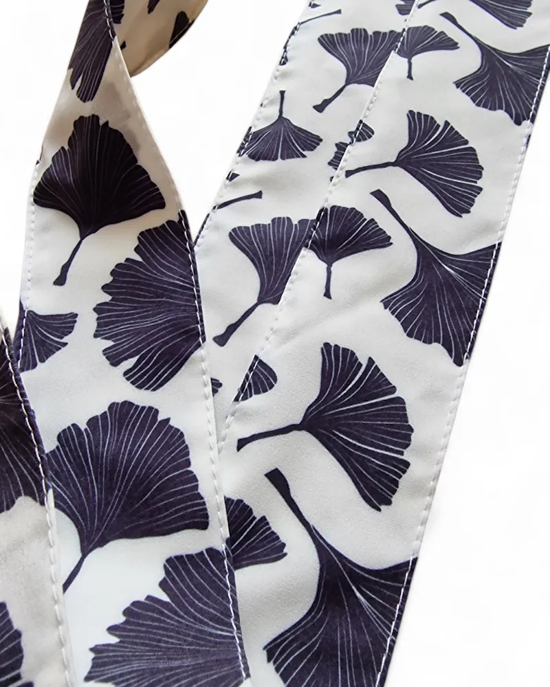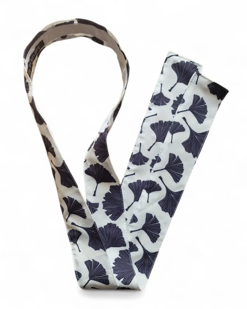 Serre-tête Boho Ginkgo Écru déhoussable et lavable, motif végétal noir sur fond clair. Élégant et confortable, sans pression, idéal même avec des lunettes.