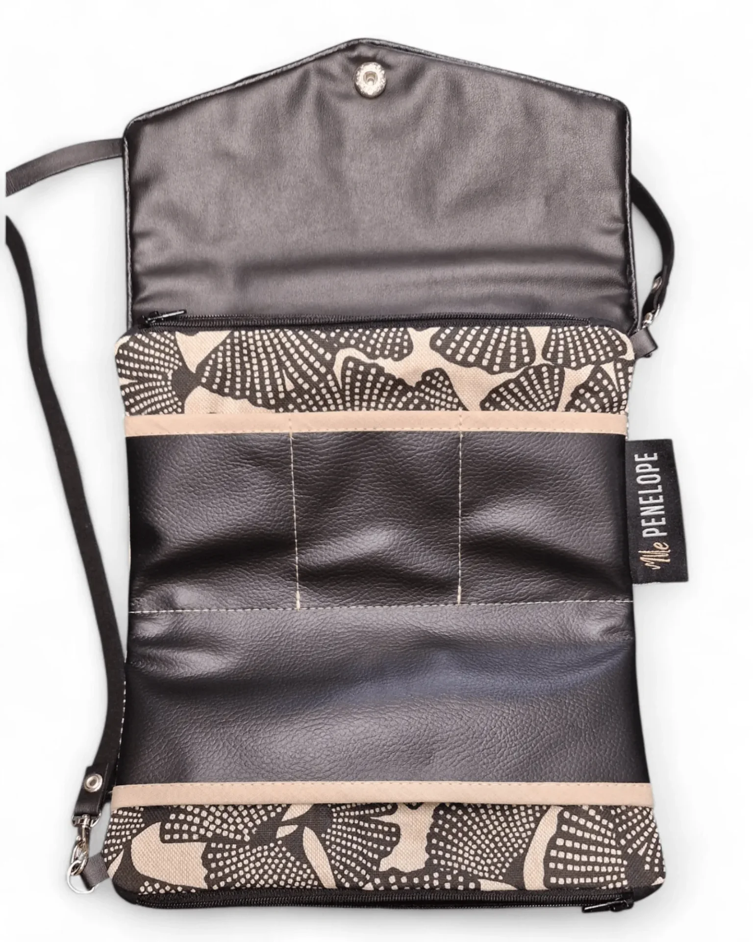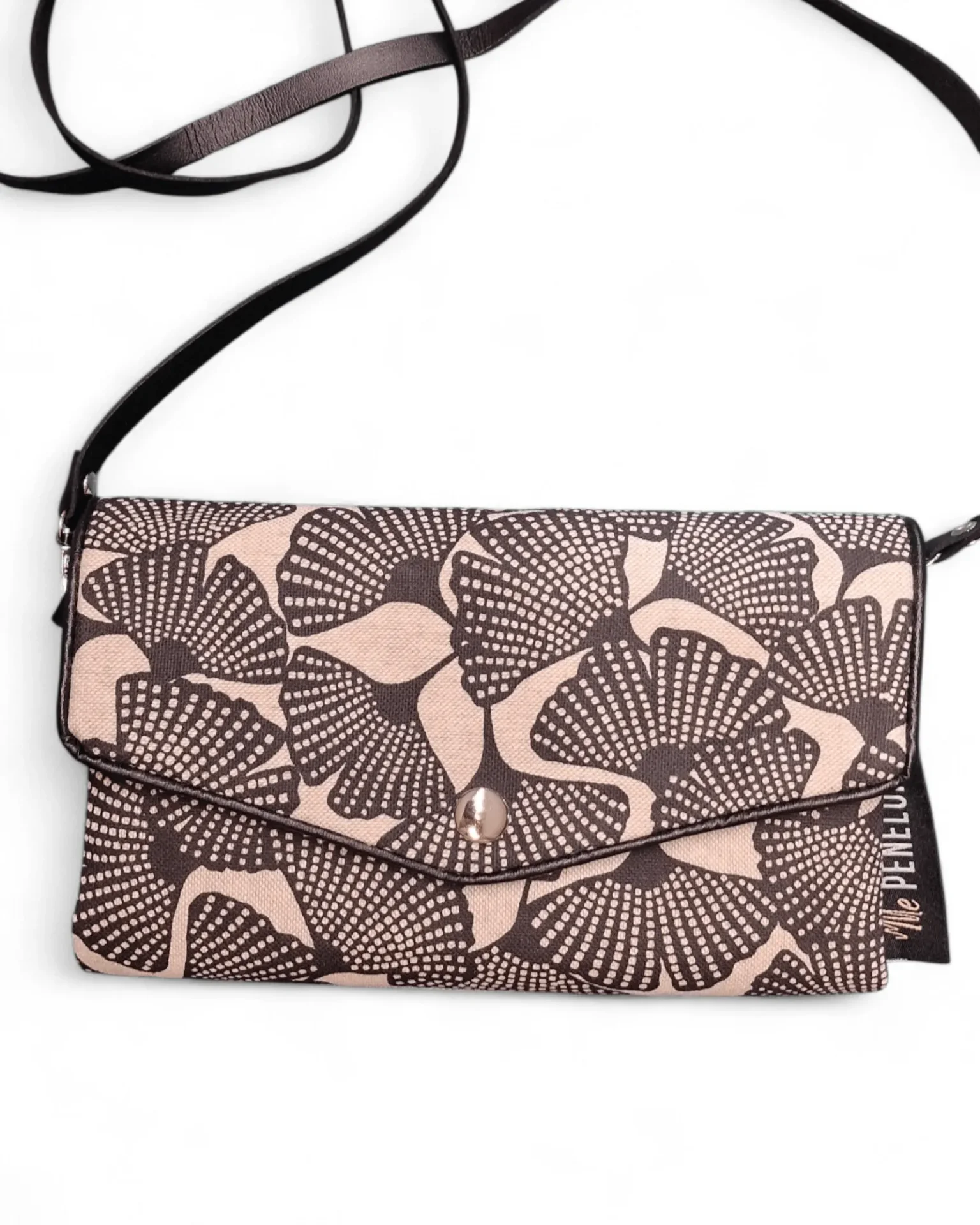 Mini sac Nomade Osaka aux motifs graphiques inspirés du Japon, mêlant beige doux et brun profond. Un modèle élégant et intemporel, compact et pratique pour emporter l’essentiel avec style.