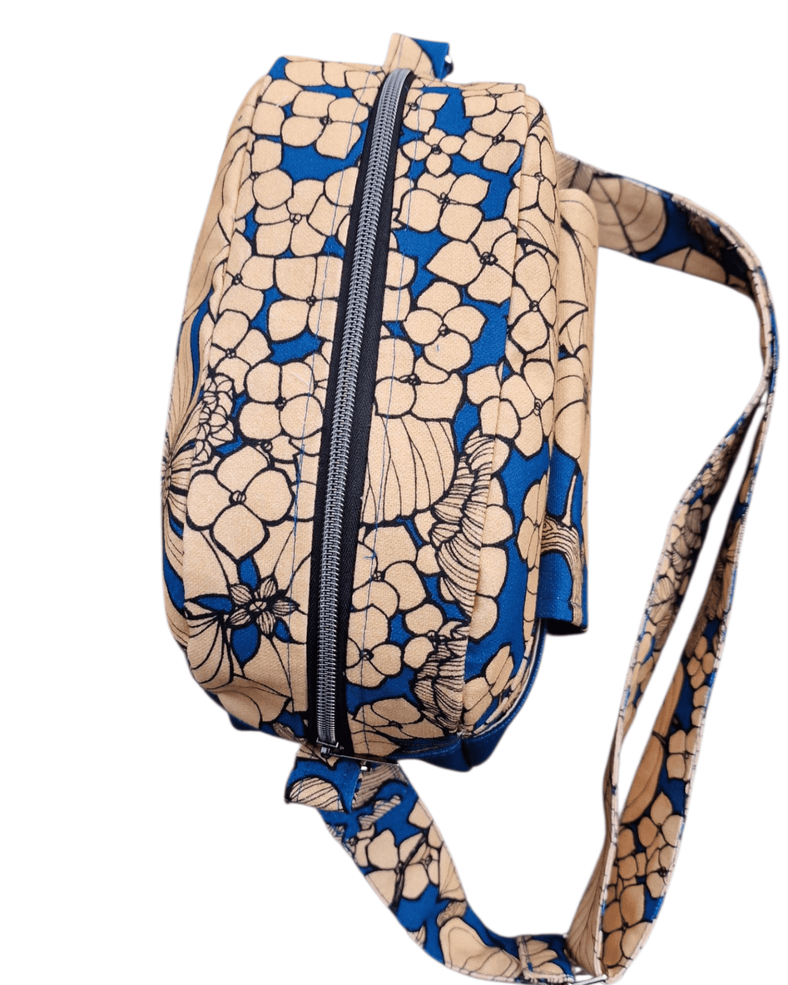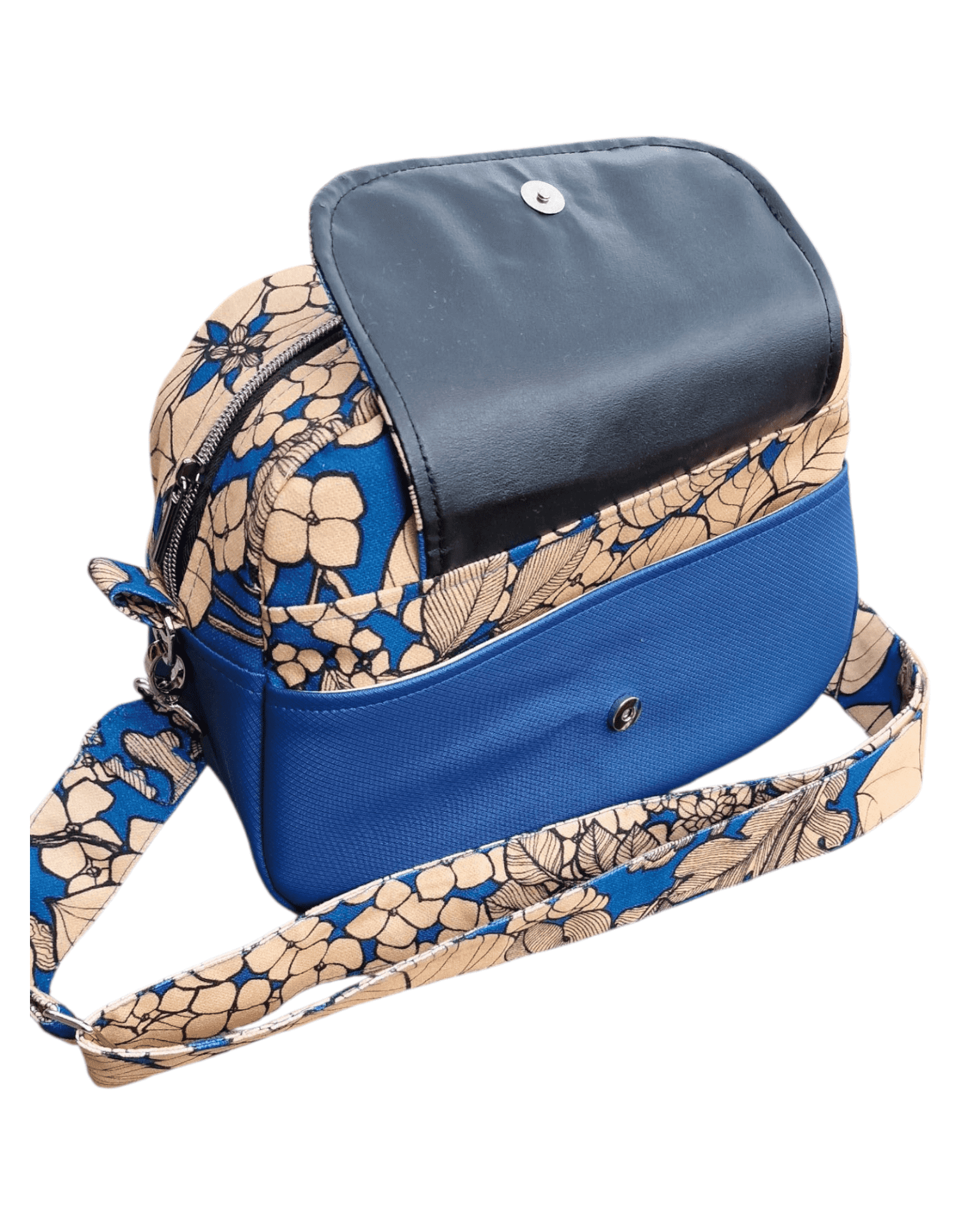Le Milo “Capucine” séduit par son allure lumineuse et son style rétro chic. Pensé comme un véritable compagnon du quotidien, il associe une toile de coton florale beige sur fond bleu vibrant à une base en PVC texturé bleu, pour un rendu à la fois élégant, original et intemporel.