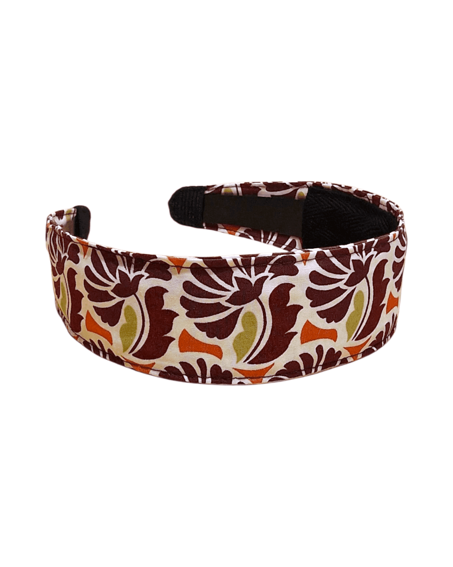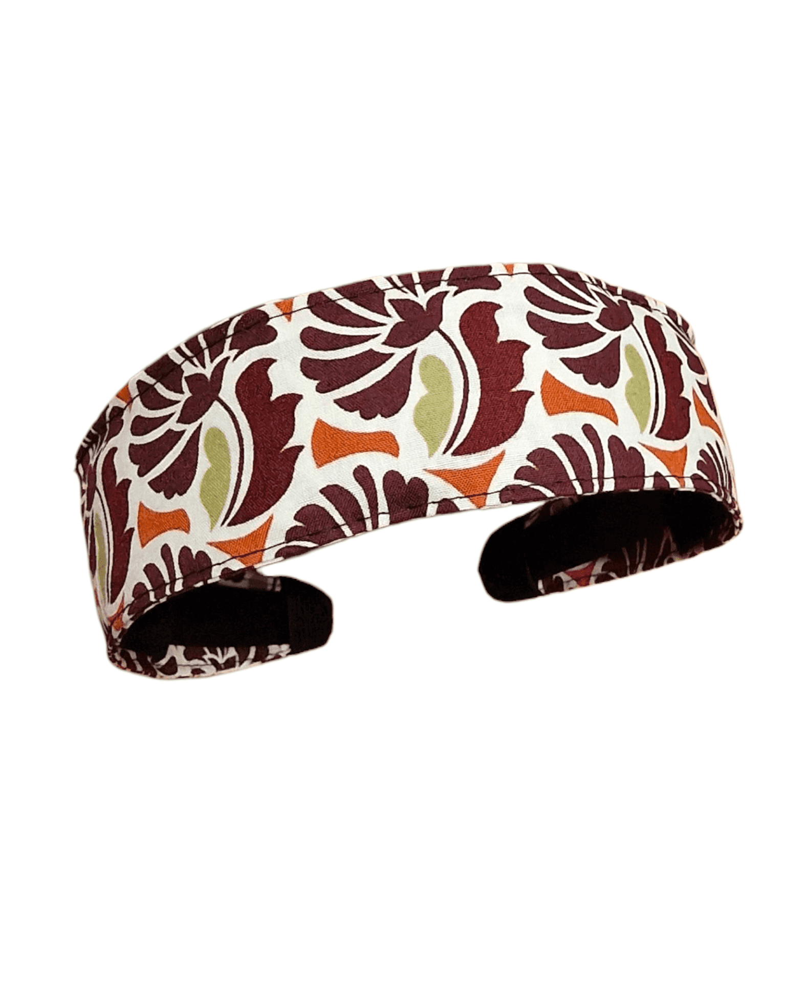 Un motif floral vintage aux tons brique, olive et orange qui insuffle un charme seventies et plein de pep’s à vos coiffures.