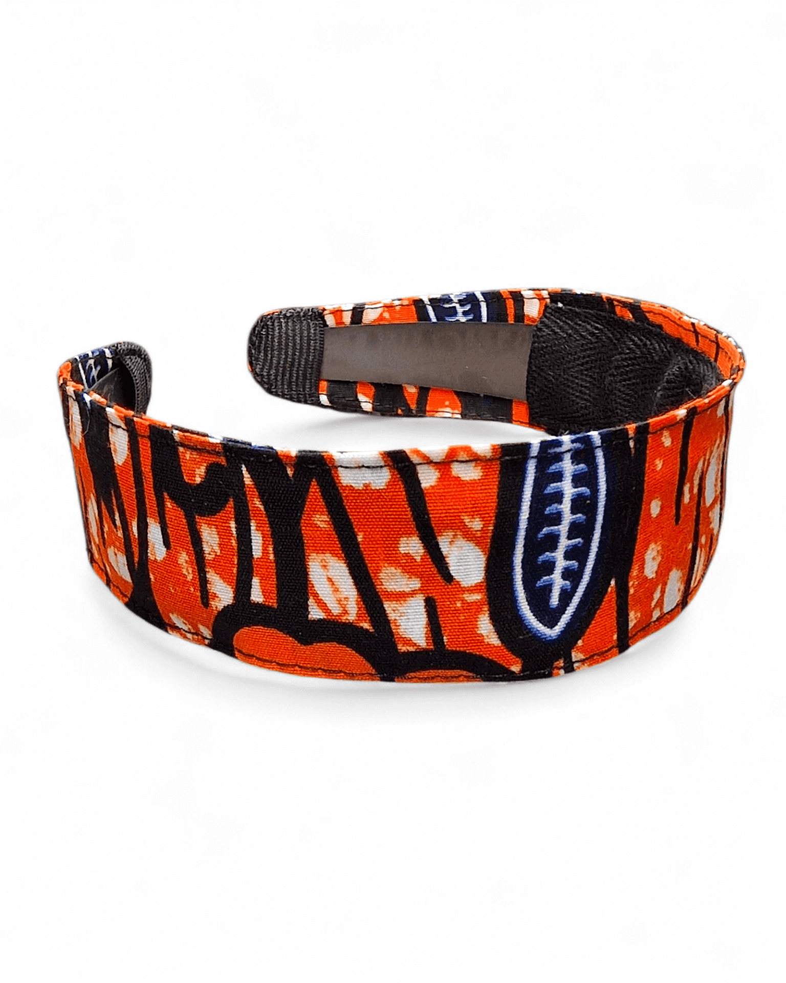 Un imprimé wax vibrant aux nuances orange et noir, graphique et lumineux. Zanzibar apporte énergie et caractère à la coiffure pour un style audacieux et affirmé.