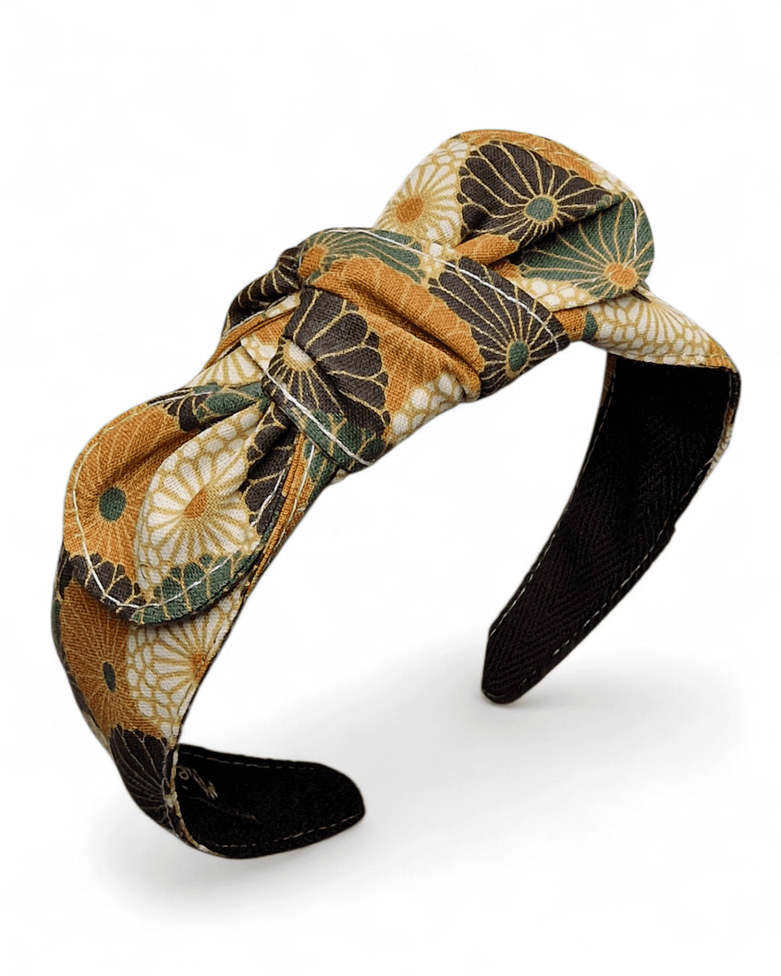 Inspiré des motifs floraux japonais, le serre-tête noué Kiku apporte une élégance douce et intemporelle. Ses fleurs graphiques aux tons chauds créent un équilibre parfait entre raffinement et modernité.