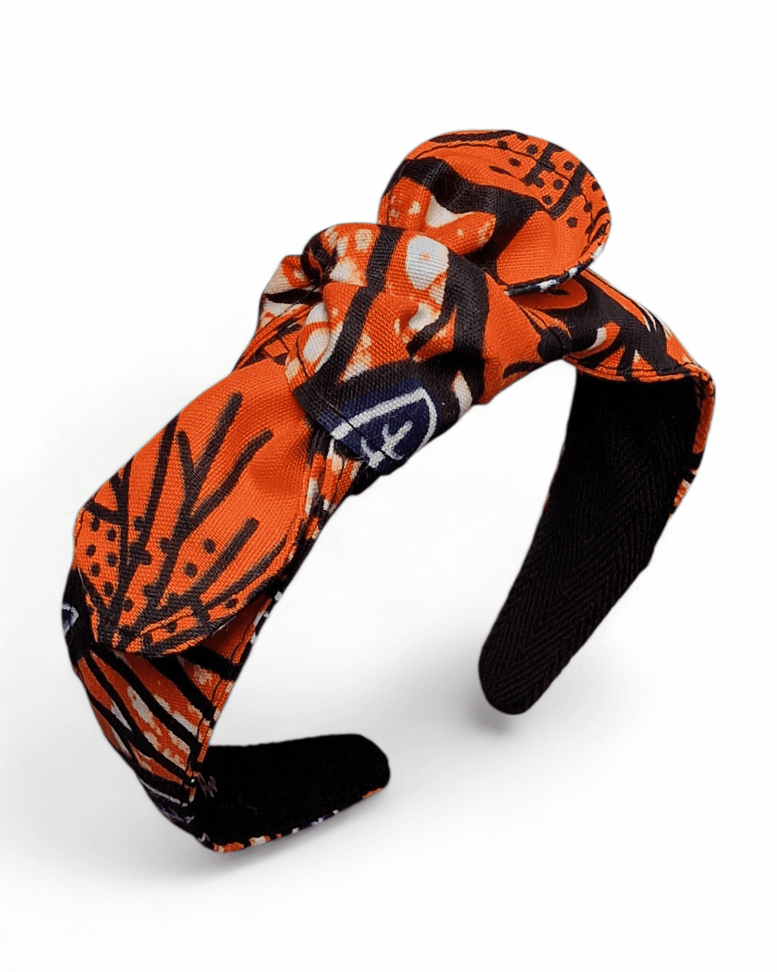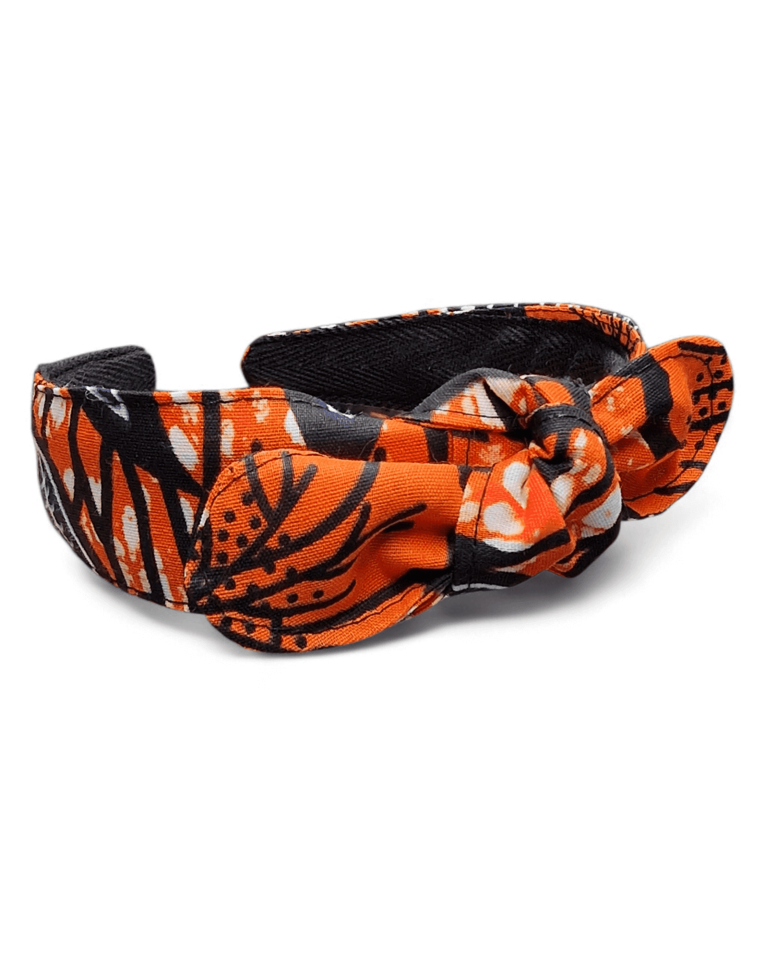 Version nouée du modèle Zanzibar, ce serre-tête séduit par son imprimé vibrant aux accents orange et noirs inspirés des tissus africains. Son nœud apporte du caractère tout en restant confortable et facile à porter au quotidien.